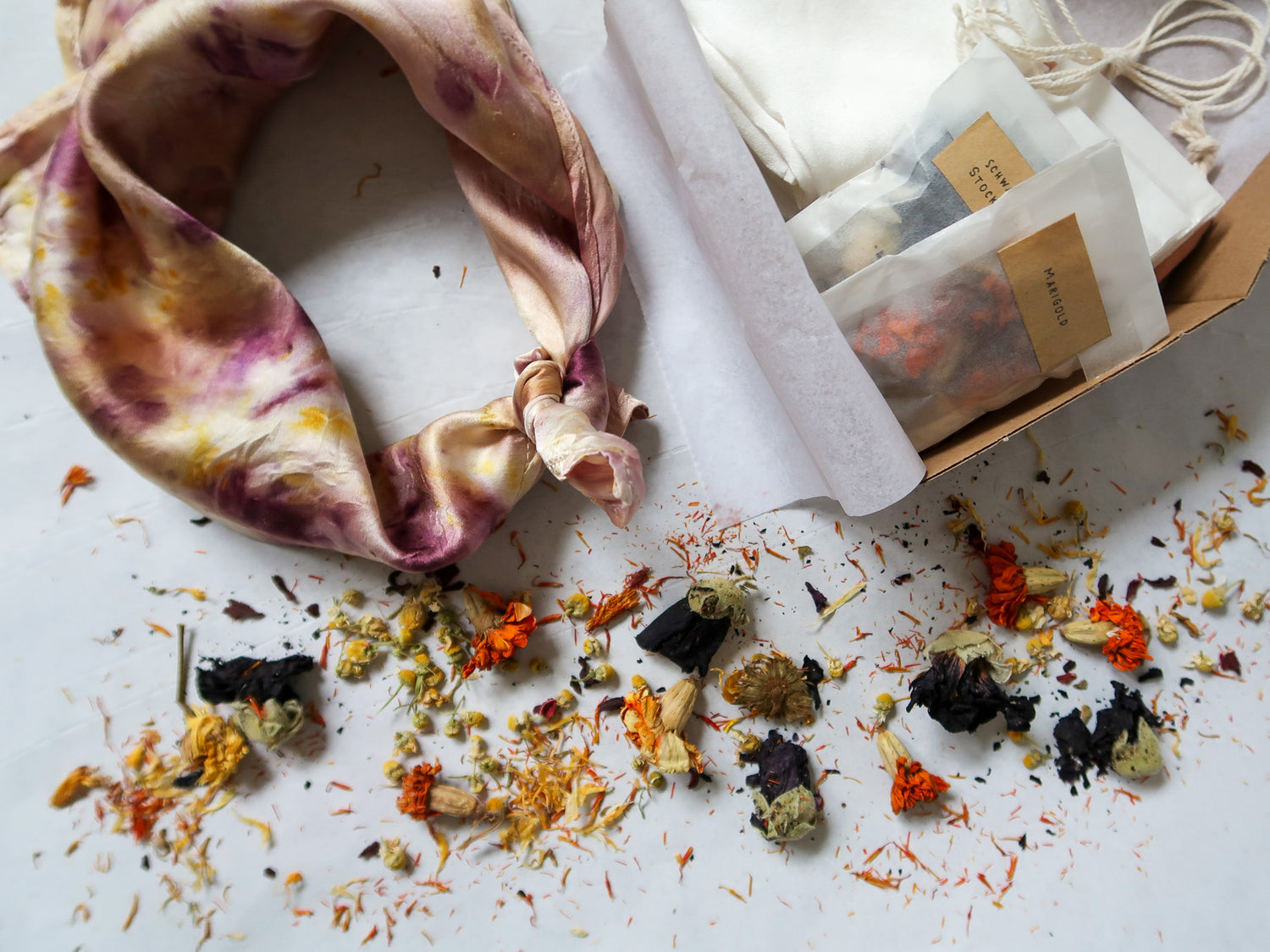 The bundle dye kits are the perfect way to explore natural dyeing at home. Each kit comes prepped and ready to use - just open it up and start creating with plant-based color!