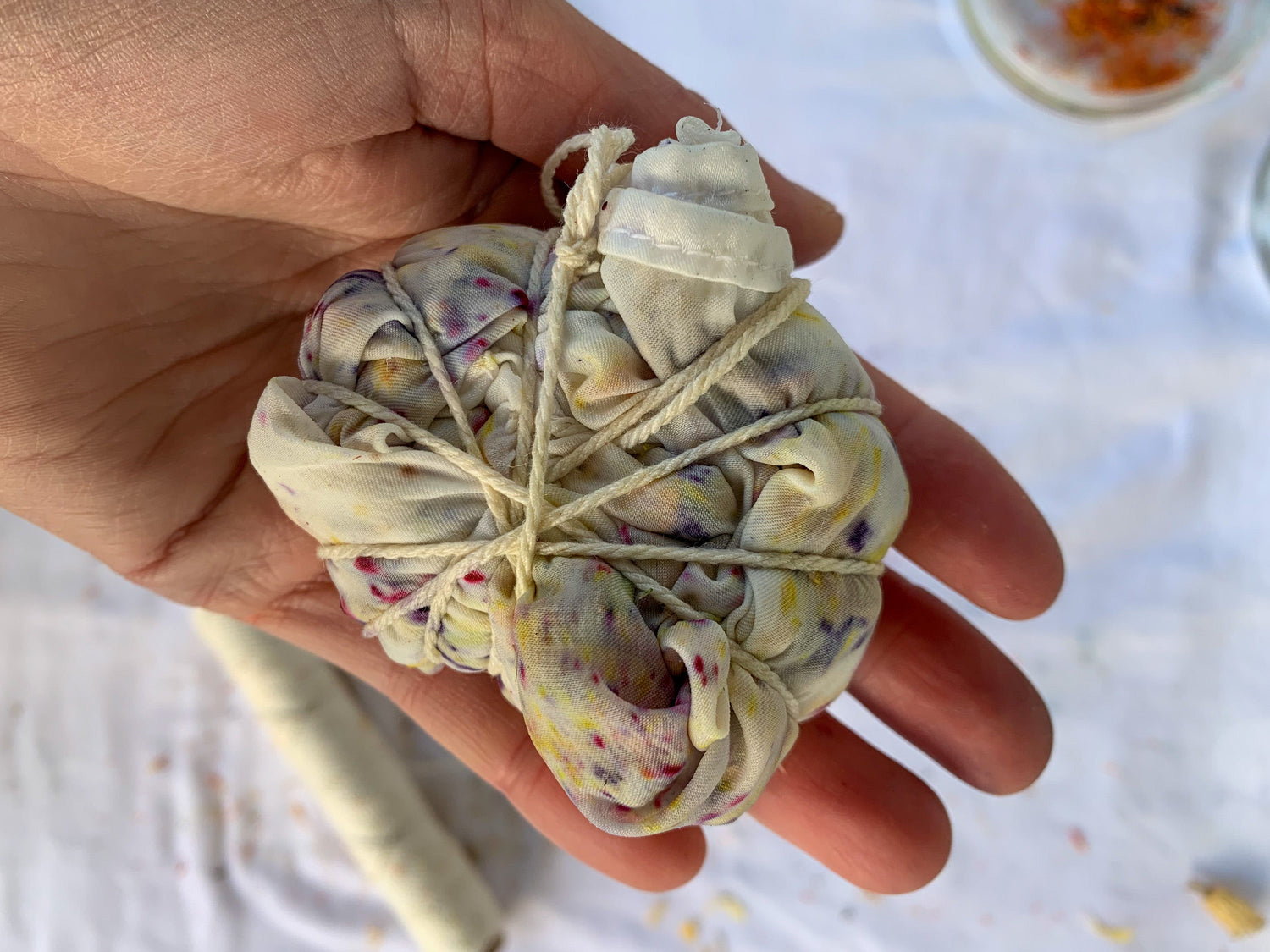 In my opinion, bundle dyeing is the best way to get started with natural dyes. It’s simple, easy and fun and the results are ALWAYS beautiful. Bundle dyeing is also the technique I teach at all my festival workshops, as it’s the fastest way to upcycle old, stained clothes. This tutorial is for you to follow along if you purchased one of my bundle dye kits (thank you! <3), but there's no need to make a purchase to join in the fun. Feel free to work with whatever you have on hand!