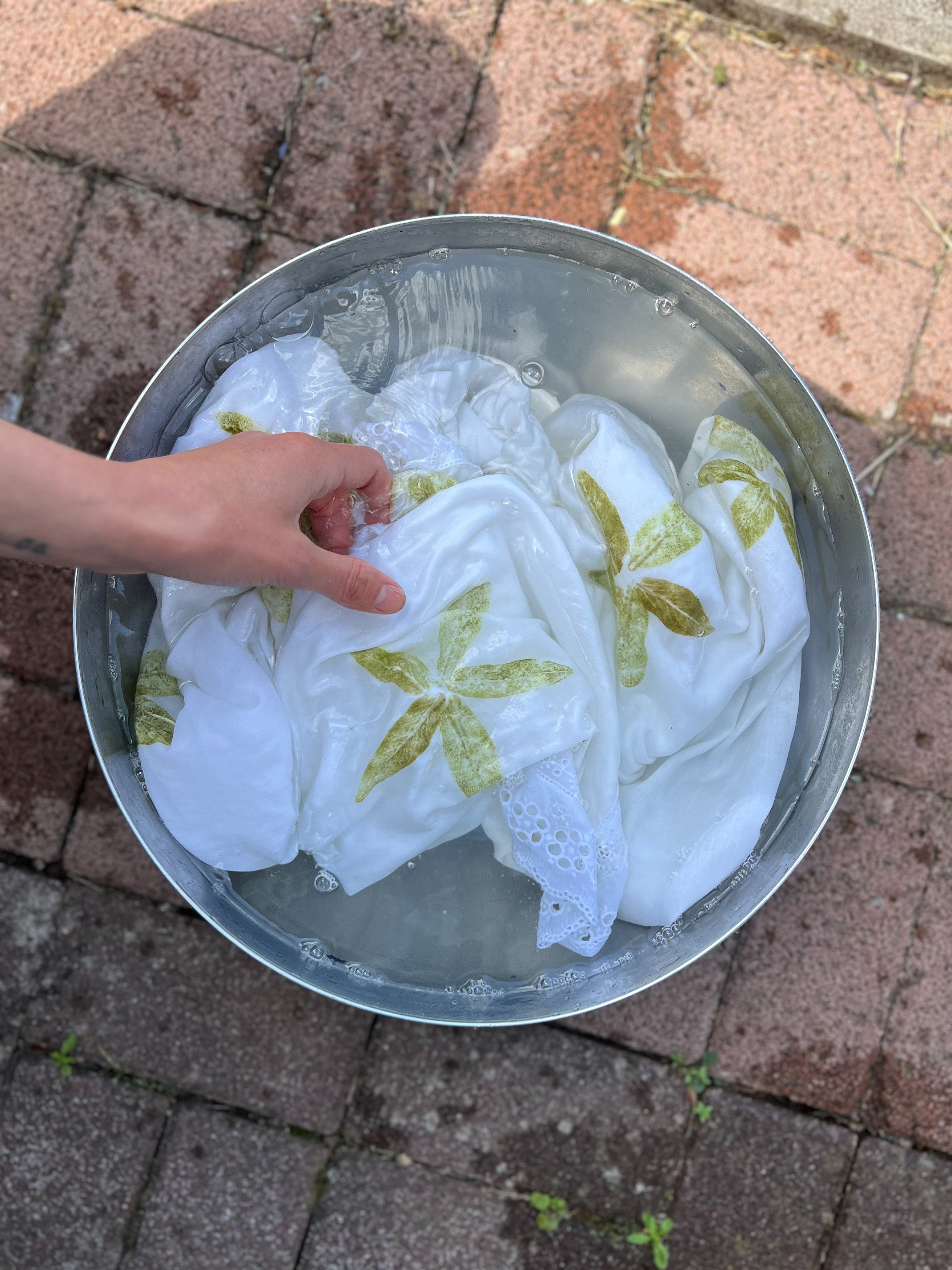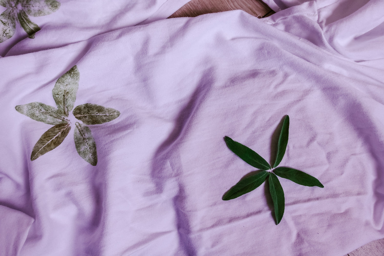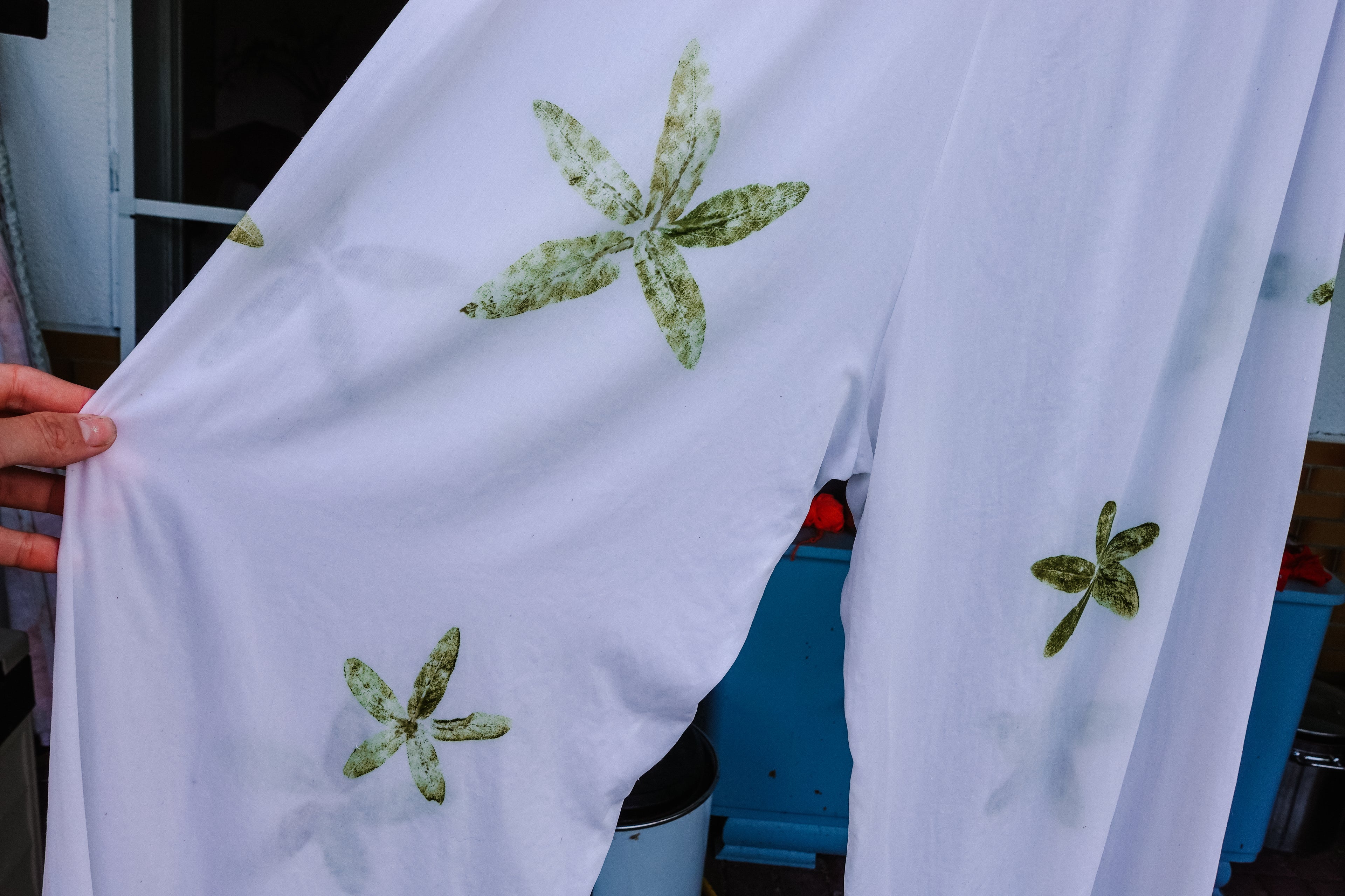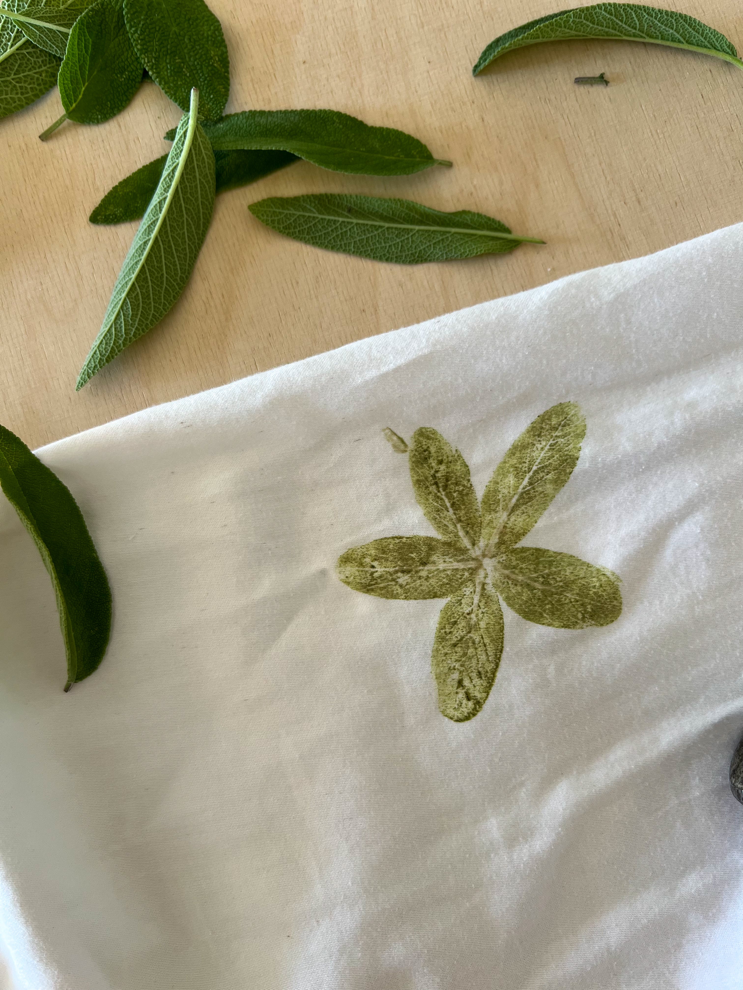 I love using sage for plant hammering (tataki zome) - its soft, rounded leaves are perfect for creating beautiful shapes and floral designs. For these pants, I arranged the leaves into flower-like patterns, but you can also use two leaves to form hearts or even spell out letters and names. The possibilities are endless!