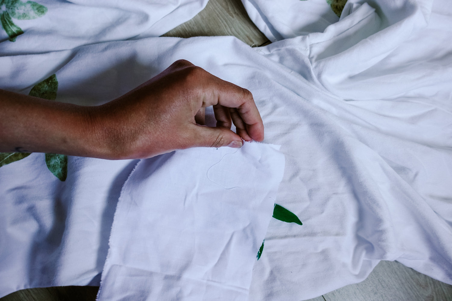 Rinse your printed fabric gently in cold water. Follow with a hand wash using a pH-neutral detergent, like one made for wool or silk.
